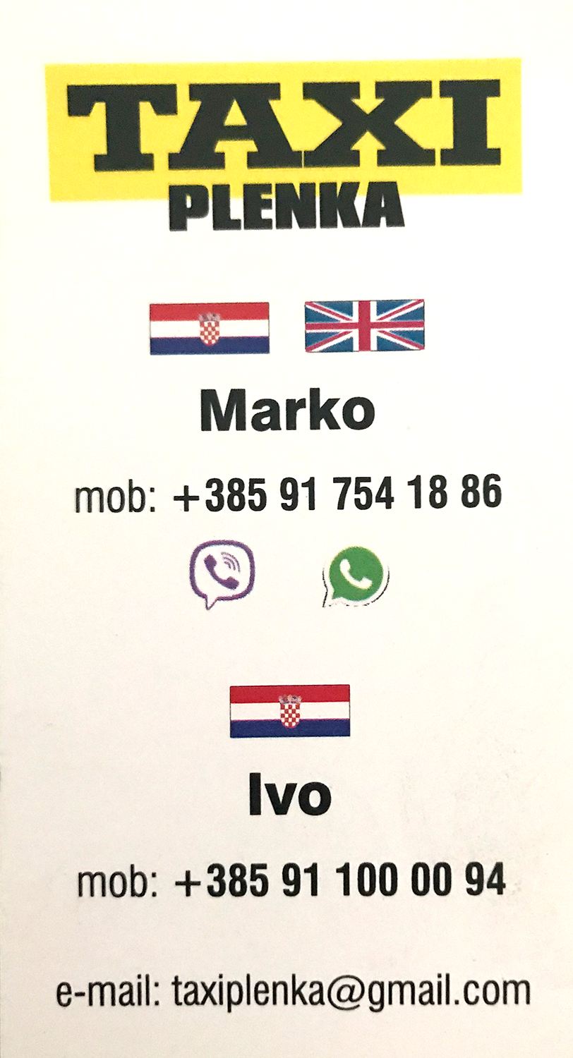 Taxi transfer service: +385 91 754 1886 / +385 91 100 0094